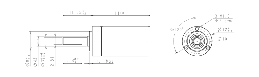 | 齒輪箱長度L1(mm) | 17.5 | 23.3 | 27.8 |